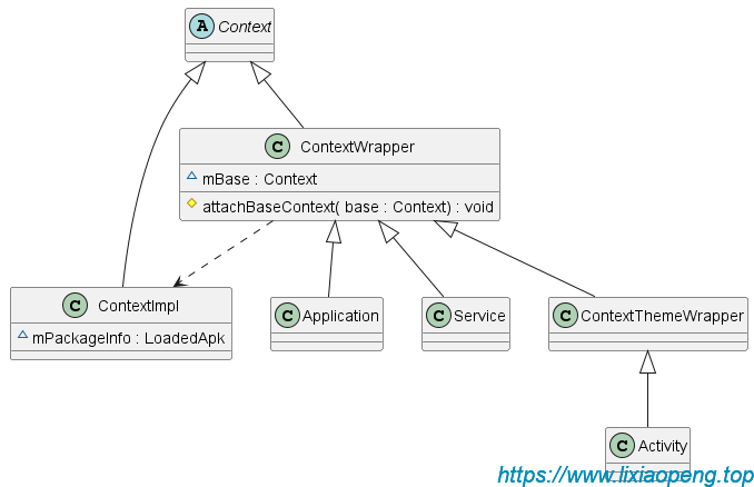 ContextWrapper是上下文的包装类,ContextImpl是上下文的实现类,Activity是ContextThemeWrapper的直接子类。